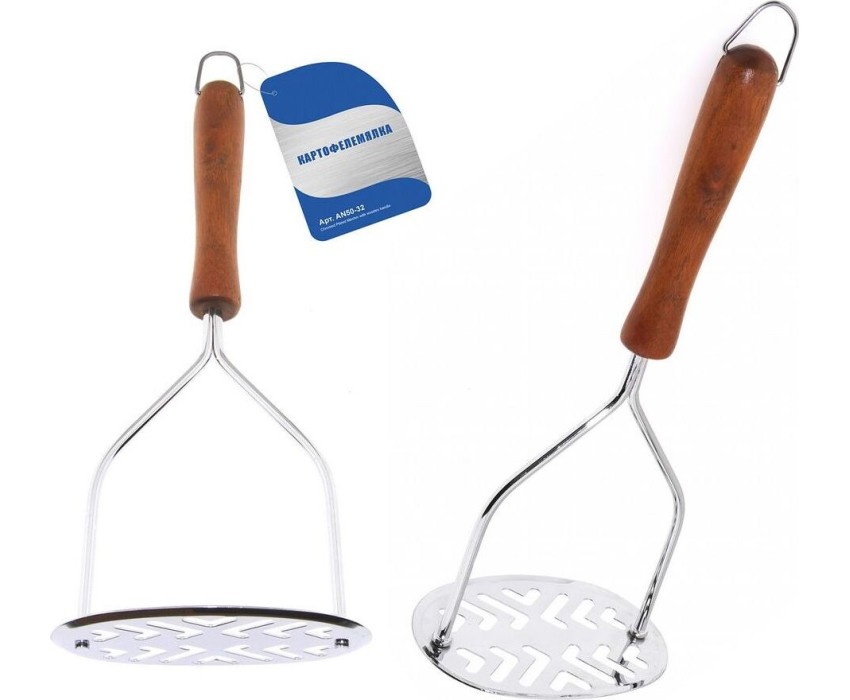 Картофелемялка хром дерев. ручка AN50-32 Материал: Сталь с хром.покрытием, дерево