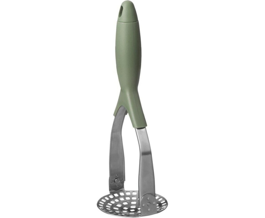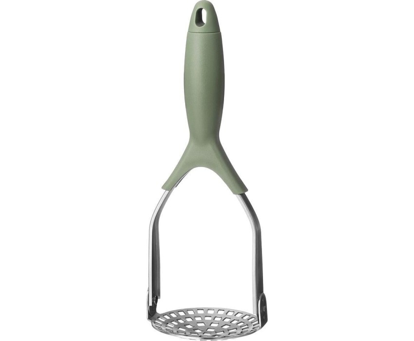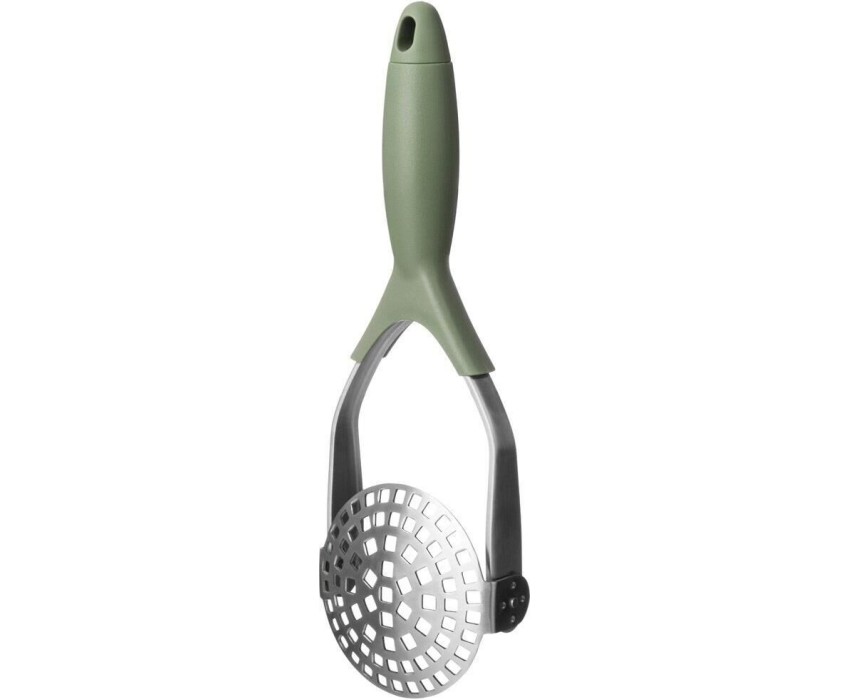 КАРТОФЕЛЕМЯЛКА для приготовления пюре быстро и качественно. Картофелемялка металлическая не впитывает запахи, легко моется, удобна и практична в использовании. Мялка имеет литое соединение, за счет чего изделие очень прочное и долговечное. За прессом легко ухаживать, так как его можно мыть в посудомоечной машине. Эта кухонная утварь для картофеля очень нужная вещь среди кухонных принадлежностей.Для удобного хранения ручка толкушки снабжена петелькой и ее можно подвесить на крючок.
