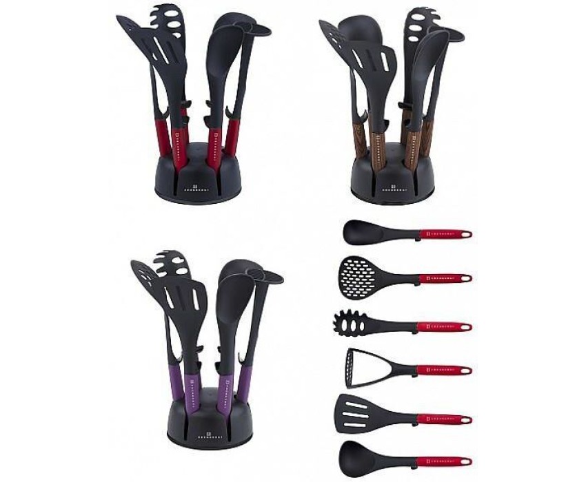 Поварешки Наборы 7 Предметов Теплостойкость До 185° Материал Нейлоновый / Пластиковый, Набор Включает: - Ложка Для Вермишели Половник Картофелемялка Лопатка Для Набирания И Переворачивания С Прорезями Ложка Шумовка Подставка