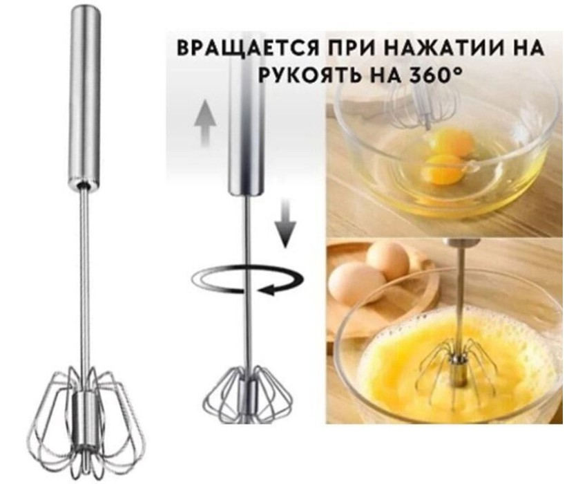 Полуавтоматический венчик для взбивания NIMBUS из нержавеющей стали, размер: 25.5*5.8 см Материал: рабочая часть - нержавеющая сталь 430, ручка - из 410 стали. Картонная подложка+пакет. Венчик вращается при нажатии на ручку на 360 градусов. Ручка круглой формы.