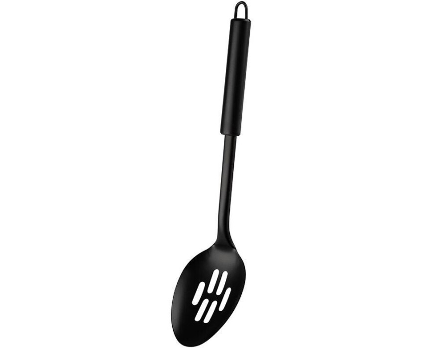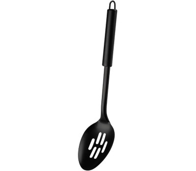 Ложка с отверстиями CLASSICO NERO из нержавеющей стали, цвет - черный, non-stick (раб часть) Материал: раб часть 430 сталь, ручка 410 сталь, Размер: 32,5*7,2 см. Картонная подложка. Овальная ручка.