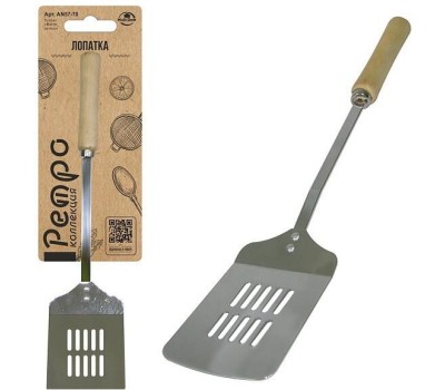 Лопатка предназначена для переворачивания и раскладывания блюд, приготавливаемых на сковороде. Кухонные инструменты, выполненные в одном стиле, предоставляют возможность подобрать комплект под интерьер вашей кухни. Легко моется, не впитывает запахи. Изготовлено: из хромированной стали, ручка из дерева.