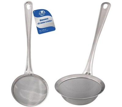 Шумовка используется для снятия пенки с готовящихся супов, бульонов, варенья. Шумовка удобна для помешивания, а также для раскладывания вареников и пельменей по тарелкам. Шумовка «Стэнли-стиль» подойдет к любому интерьеру, ее можно хранить на крючке рядом с зоной приготовления пищи. Общая длина 31см, диаметр рабочей части 10,5см. Перед первым использованием и после каждого применения промыть в проточной воде мягкой щеткой или губкой с жидким моющим средством, просушить. Можно мыть в посудомоечной машине. Изготовлено: коррозионностойкая (нержавеющая) сталь.