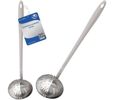 Приспособления 2-в-1 — это всегда выигрышно для любой кухни. Половник-шумовка решает 2 задачи: во-первых, используется для раскладывания первых блюд, разливания компотов, морсов, киселей; во-вторых, поможет вам снять пенку, разложить вареники и пельмени по тарелкам. Изготовлено из коррозионностойкой (нержавеющей) стали. Размер: 32х8 см. Объем половника 100 мл.