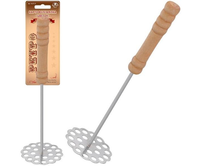 Предназначена для приготовления картофельного пюре. Оригинальная конструкция изделия позволяет добиться наилучшего результата и не допустит попадания в блюдо кусочков неразмятого картофеля. Изготовлено из хромированной стали, ручка из дерева. Размер: 24х7 см.