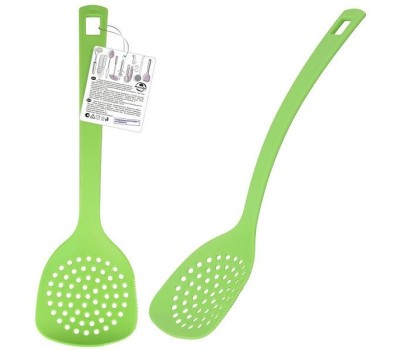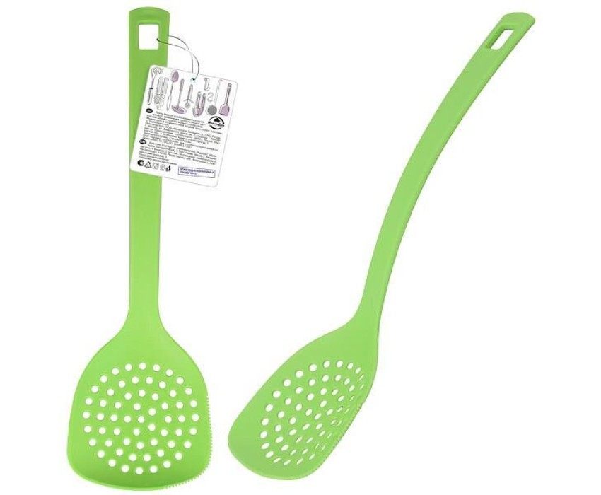 Шумовка-один из необходимых предметов кухонной утвари. Шумовка используются для извлечения продуктов из жидкости, бульона, снятия пены, для варки пельменей и вареников, для бланширования овощей и т. п. Рабочая часть шумовки имеет универсальный размер и подходит для посуды различных диаметров, а эргономичная ручка удобно лежит в руке. На ручке шумовки имеется отверстие для подвешивания. Шумовка легко моется, не впитывает запахи. Изготовлено: пластмасса (полипропилен). Общая длина 33см.