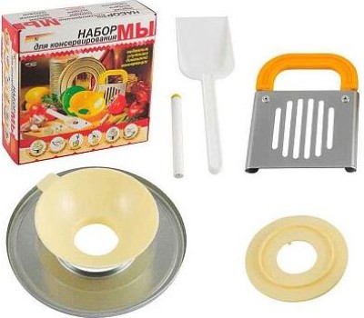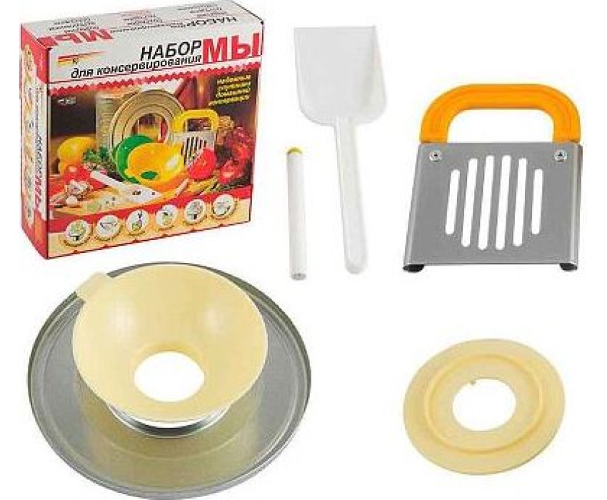 Набор для консервирования 6 предметов: - воронка; - переходник для банок; - стерилизатор; - совочек; - магнитная палочка; - сливная решетка; Упаковка в цветной короб.