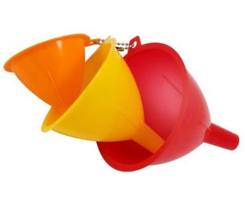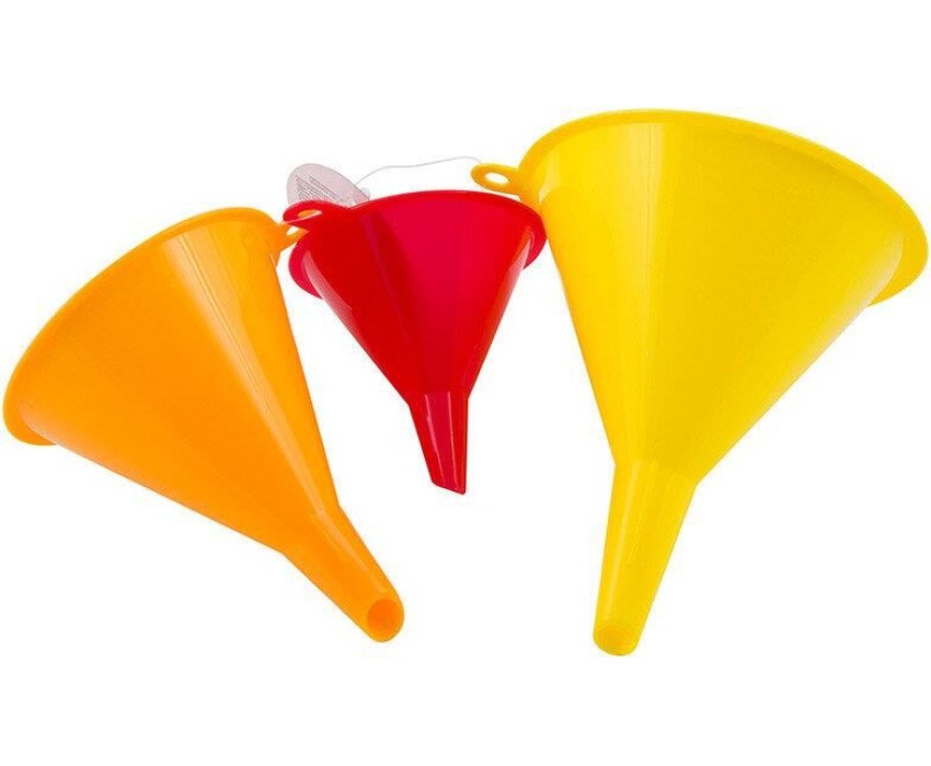 Набор воронок 3 штуки в наборе, диаметры 10, 8 и 7 см размер: 11*10,5*10см Материал: полипропилен Упаковка: хэнгтаг Набор воронок используется для переливания различных жидкостей в емкости с узким горлышком.