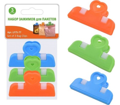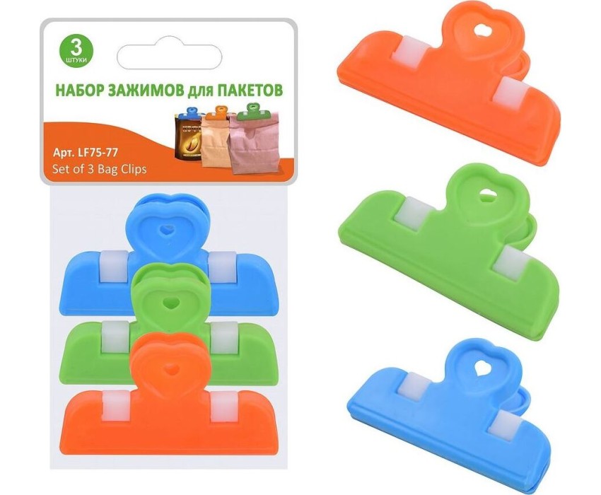 Н-р зажимов д/пакетов mix 3 шт 6,5 см LF75-77 Материал: Пластмасса