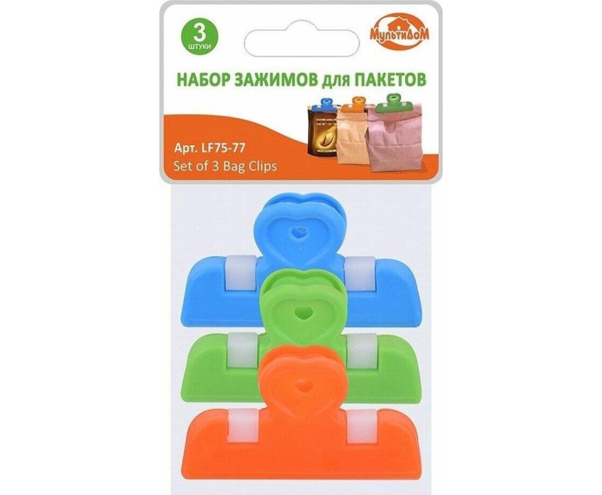 Н-р зажимов д/пакетов MULTIDOM Н-р зажимов д/пакетов mix 3 шт 6,5 см LF75-77