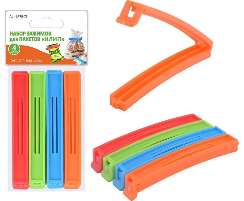 Н-р зажимов для пакетов "Клип" 4 шт дл 11 см LF75-75 Материал: Пластмасса (РР)