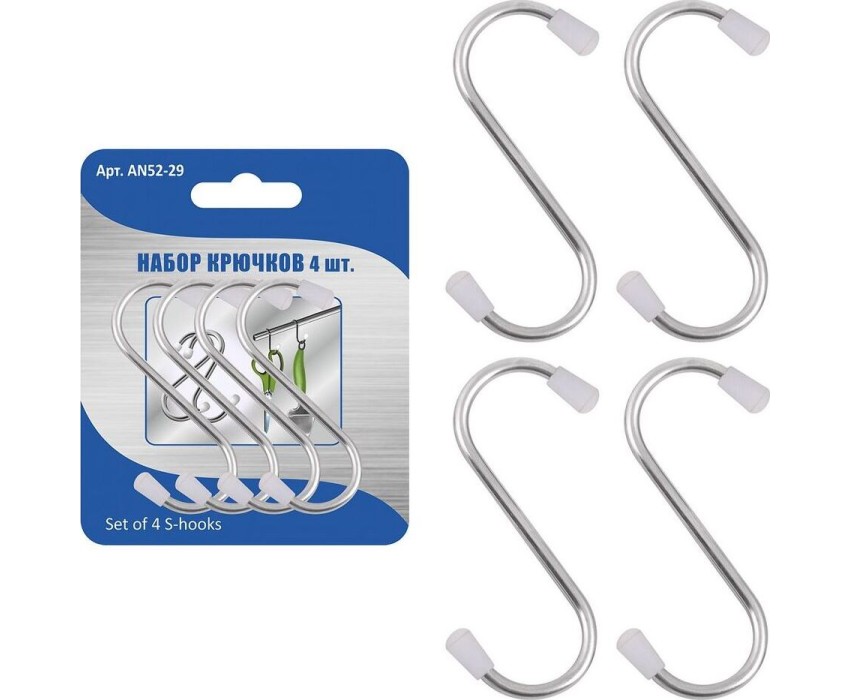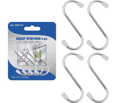 Н-р крючков 4 шт. h7см, ширина 3cм AN52-29 Материал: Металл (Сталь), Пластмасса (PVC) Подходит к штанге диаметром до 2см
