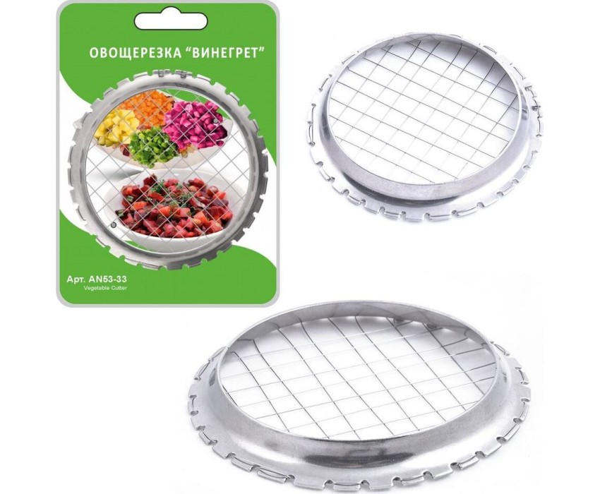 Овощерезка "Винегрет" 8мм AN53-33 Материал: Металл (Нерж.сталь), Металл (Сталь) Диаметр 9 см, размер ячейки 8х8 мм.