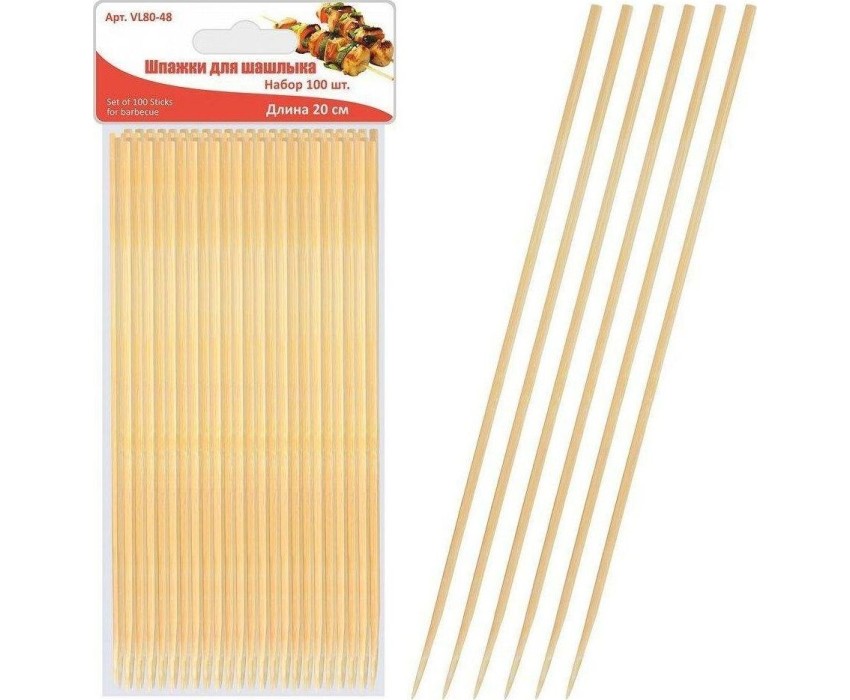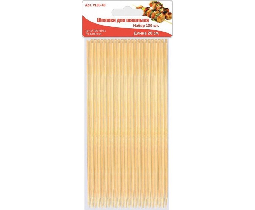 Шпажки для шашлыка. Набор 100 шт. 20см VL80-48 Материал: Дерево (Бамбук) Шпажки предназначены для одноразового использования.