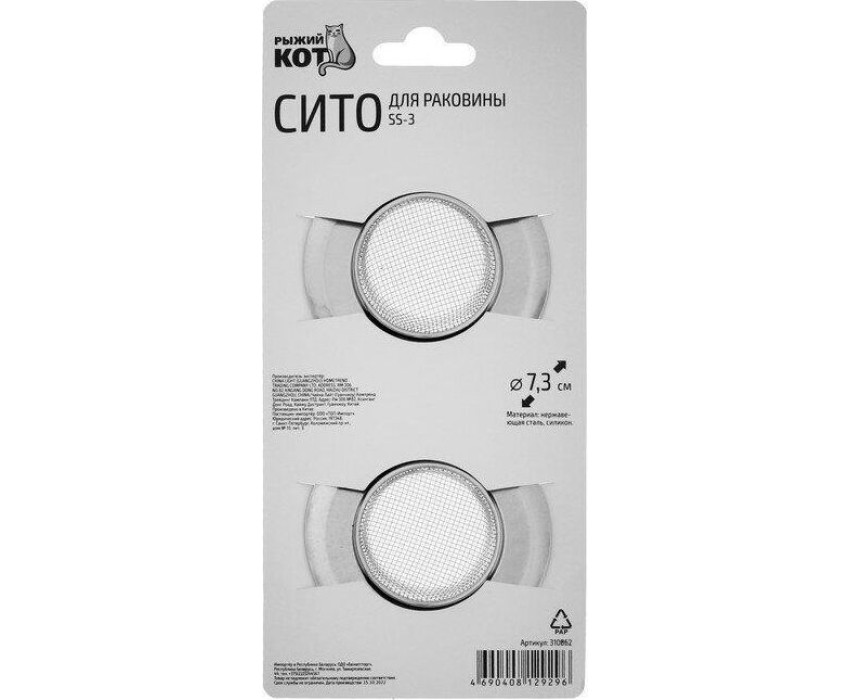 Сито для раковины РЫЖИЙ КОТ Сито для раковины SS-3, 2шт.в упаковке (310862)