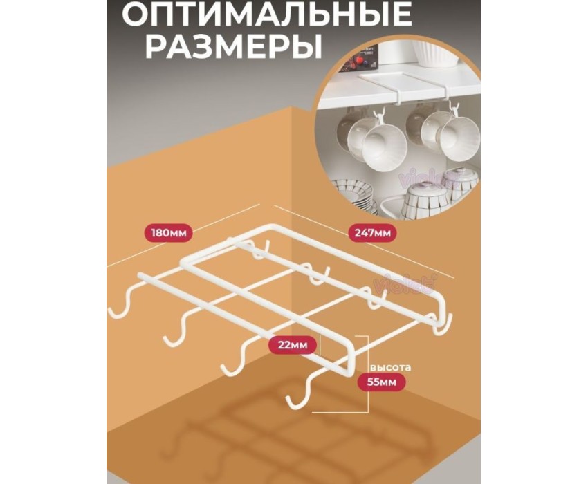 Изделие из металла VIOLET Держатель кухонный для чашек (белый) 820006