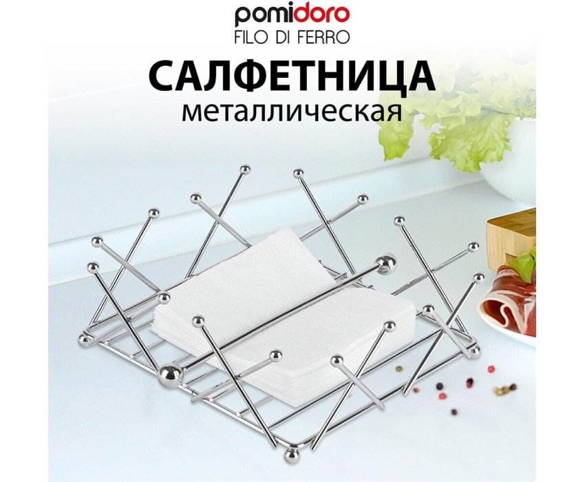 P135601 Filo di ferro Салфетница Удобная и функциональная салфетница для повседневной сервировки. Материал проволока. Размеры 19*19*8см.