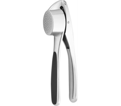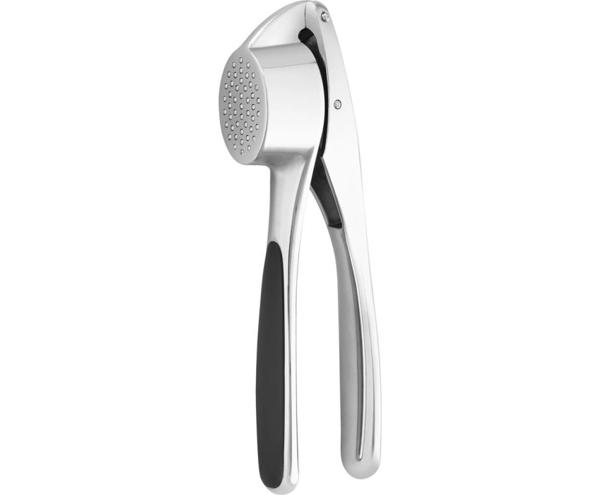 Чеснокодавилка. Цинковый сплав с хромированным покрытием. Использование: не подходит для посудомоечной машины. Материал рабочей поверхности: нержавеющая сталь. Материал ручки: прорезиненные ручки с удобным хватом, не позволяющие руке скользить.
