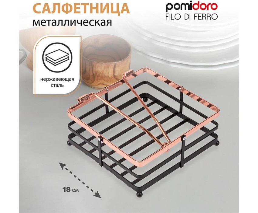 P135614 Filo di ferro Салфетница Удобная и функциональная салфетница для повседневной сервировки. Материал проволока. Размеры 18*18*8см.