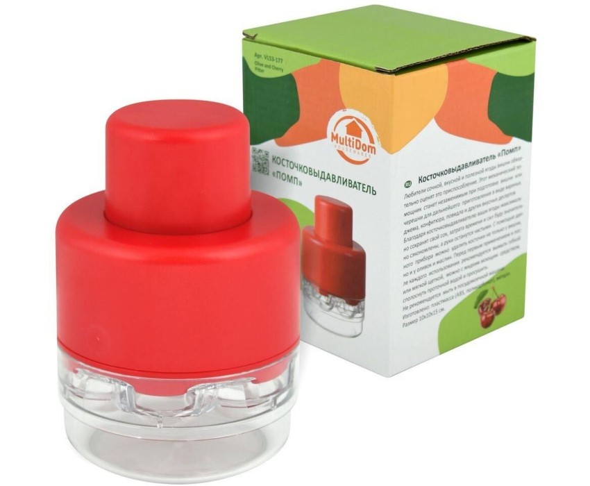 Любители сочной, вкусной и полезной ягоды вишни обязательно оценят это приспособление. Этот механический помощник станет незаменимым при подготовке вишни или черешни для дальнейшего приготовления в виде варенья, джема, конфитюра, повидла и других вкусных десертов. Благодаря косточковыдавливателю ваши ягоды максимально сохранят свой сок, затрата времени и сил буду значительно сэкономлены, а руки останутся чистыми. С помощью данного прибора можно удалить косточки не только у вишни, но и у оливок и маслин. Перед первым применением и после каждого использования рекомендуется вымыть губкой или мягкой щеткой, можно с жидким моющим средством, сполоснуть проточной водой и просушить. Можно мыть в посудомоечной машине. Изготовлено: пластмасса (ABS, полистирол), металл. Размер 10х10х15 см.