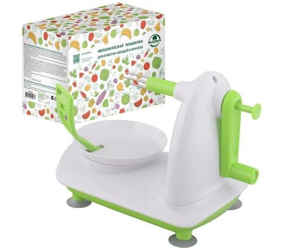 Механическая машинка для очистки овощей и фруктов округлой формы (например, для свеклы, картофеля, репы, айвы, яблока и т. п.) поможет быстро очистить продукты от кожицы для приготовления овощных и фруктовых блюд: пирогов, десертов, варенья и т.п. Машинка максимально сэкономит ваше время. И вы по достоинству оцените это! С ее помощью кожица срезается очень тонко, тем самым вы значительно уменьшаете количество отходов и сохраняете большее количество витаминов. Для любителей изящно украшать готовые блюда, это приспособление станет отличным помощником - вы сможете с легкостью нарезать спиральки из фруктов, например, яблока или свеклы. Для этого достаточно продолжать очищать овощ или фрукт после снятия кожуры, а затем красиво уложить полученные спирали, например, в цветы. Фантазируйте, комбинируя стружки от овощей и фруктов разных цветов и украшайте ваши блюда. Корпус изготовлен из пластмассы, что облегчает уход за машинкой. Острые детали машинки защищены пластиковыми колпачками. Изготовлено: режущее лезвие из коррозионностойкой (нержавеющей) стали, корпус из пластмассы (ABS, полиэтилен, поливинилхлорид).