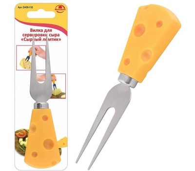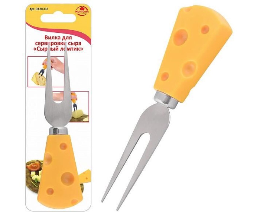 Вилка для сыра используется для того, чтобы подать сыр на стол цельным куском. Такой сыр нарезается сразу перед употреблением. Вилка также может использоваться для перекладывания с разделочной доски на тарелку. С этой вилкой ваш фуршет будет соответствовать всем правилам этикета, а гости останутся довольными правильно организованной подачей. Креативный столовый прибор станет отличным дополнением к сервировке и отличным подарком любителям сыров! Размер 12,5х3,5см. Изготовлено: лезвие из коррозионностойкой (нержавеющей) стали, ручка из пластмассы (полипропилен).