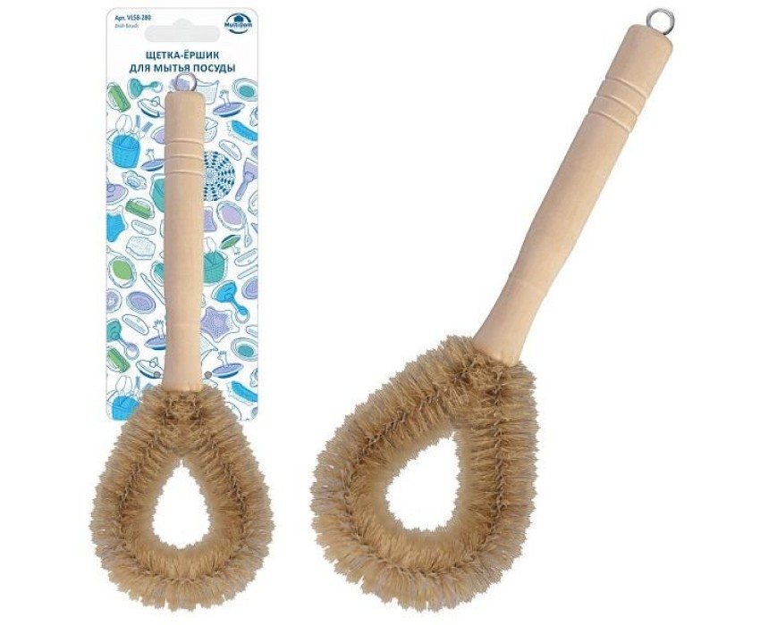 Щетка-ершик для мытья посуды поможет вам тщательно очистить поверхность от застаревшего жира, нагара, ржавчины со дна сковородок, кастрюль и кухонных поверхностей. Изогнутая форма щетки способствует удалению загрязнений в труднодоступных местах. Перед первым использованием и после каждого применения промойте в воде с моющими средствами и просушите. Изготовлена: ворс из натуральной щетины, металлическая проволока, дерево. Общая длина изделия 27 см.