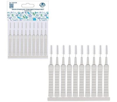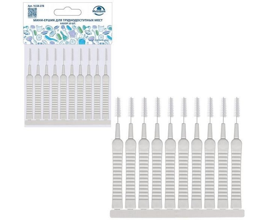 MULTIDOM Мини-ершик для труднодоступных мест. Набор 10 шт. Общая длина 6 см VL58-278