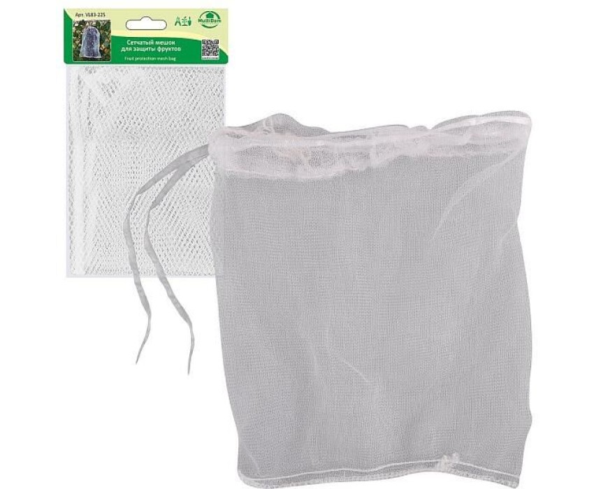 Сетчатый мешок применяется для защиты спеющих фруктов и ягод на ветках дерева. Благодаря сетчатой структуре, мешок хорошо пропускает воздух, но одновременно защищает фрукты от нападений насекомых и птиц. Наденьте мешок на гроздь винограда или головку подсолнуха и затяните его с помощью шнурков. Изготовлено из синтетического материала (100% полиэстер). Размер: 20х23 см.