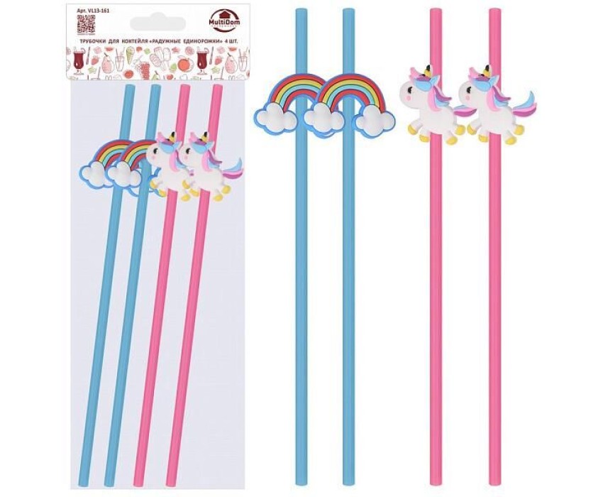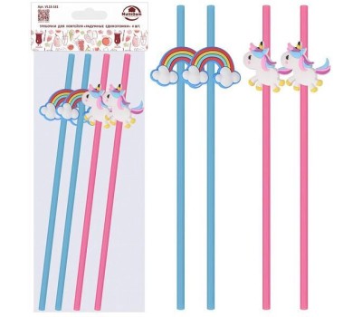 MULTIDOM Трубочки для коктейля "Радужные единорожки". Набор 4 шт. Длина 23 см. VL13-161