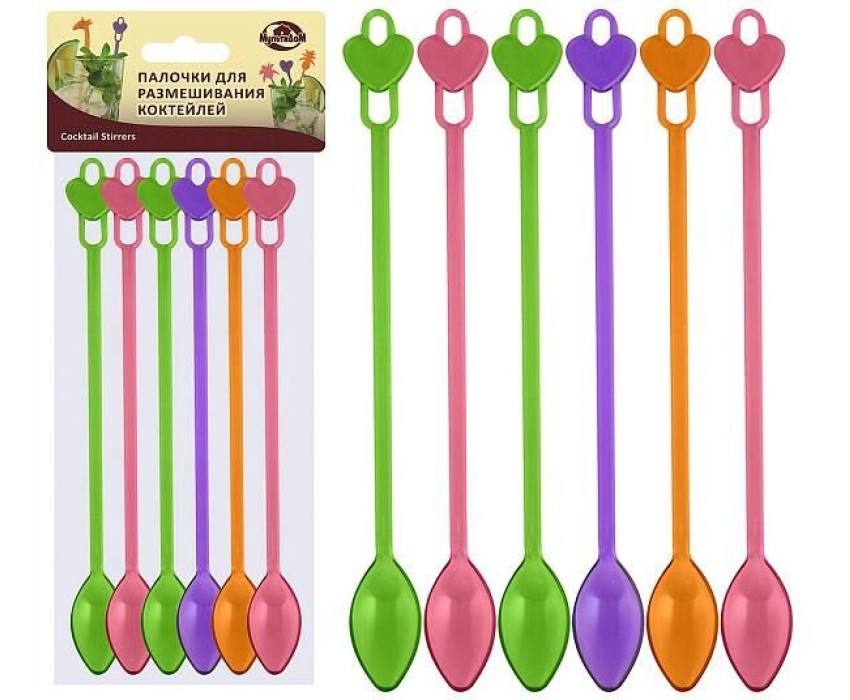 Предназначены для смешивания коктейлей в высоких стаканах. Идеально подходят для фуршетов, вечеринок и детских праздников. Ложки коктейльные многоразового использования. Оригинальный дизайн и яркая цветовая гамма поднимут настроение гостям и создадут праздничную атмосферу. После использования промойте ложки в проточной воде, можно с использованием жидких моющих средств ВНИМАНИЕ! Не подвергайте палочки термической обработке! Изготовлено из пластмассы (полистирол). Длина 20,5см.