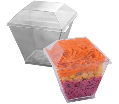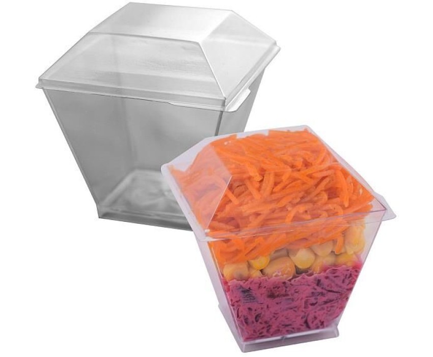 Одноразовые фуршетные формы используются для сервировки стола при организации фуршетов, выездных мероприятий, мастер-классов и т.д. Форма предназначена для мороженого, салатов, закусок, соусов и порционных десертов. Наличие крышки помогает дольше сохранить внешний вид продуктов, избежать заветривания и попадания посторонних предметов. Прозрачные стенки позволят гостям с легкостью догадаться, какая закуска их ожидает на столе. Дизайн формы гармонично сочетается с любыми предметами сервировки. Изделие станет отличным помощником при проведении семейных праздников и других мероприятий, избавит от необходимости мыть посуду и сэкономит ваше время. Объем 160 мл. Изготовлено: форма из пластмассы (полистирол), крышка из ПЭТ.