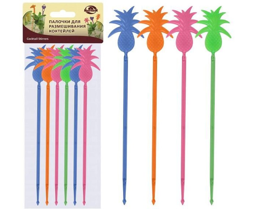 MULTIDOM Палочки для размешивания коктейлей «Ананас» Набор 6шт. 23,5см МТ76-108