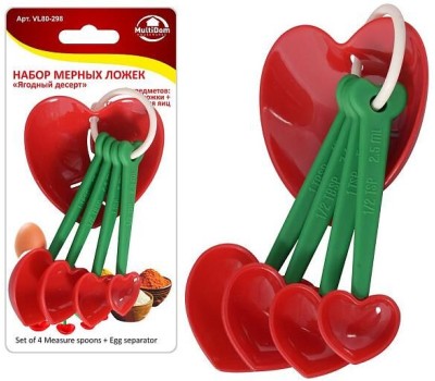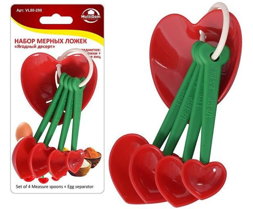 MULTIDOM Набор мерных ложек "Ягодный десерт". 5 предметов: 4 ложки + сепаратор для яиц. VL80-298