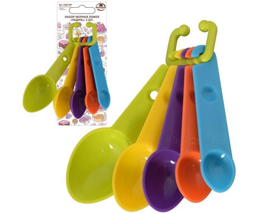 Мерные ложки – яркий и удобный аксессуар для современной хозяйки. В комплекте пять разных ложек, которые соответствуют следующим объемам: 1 мл; 2,5 мл; 5 мл; 7,5 мл; 15 мл. Используются для приготовления различных блюд и выпечки, где требуется строгая дозировка специй или других сыпучих, или жидких продуктов. С этим набором вы сможете забыть о кропотливых замерах продуктов вручную. Изготовлено: пластмасса (полипропилен).