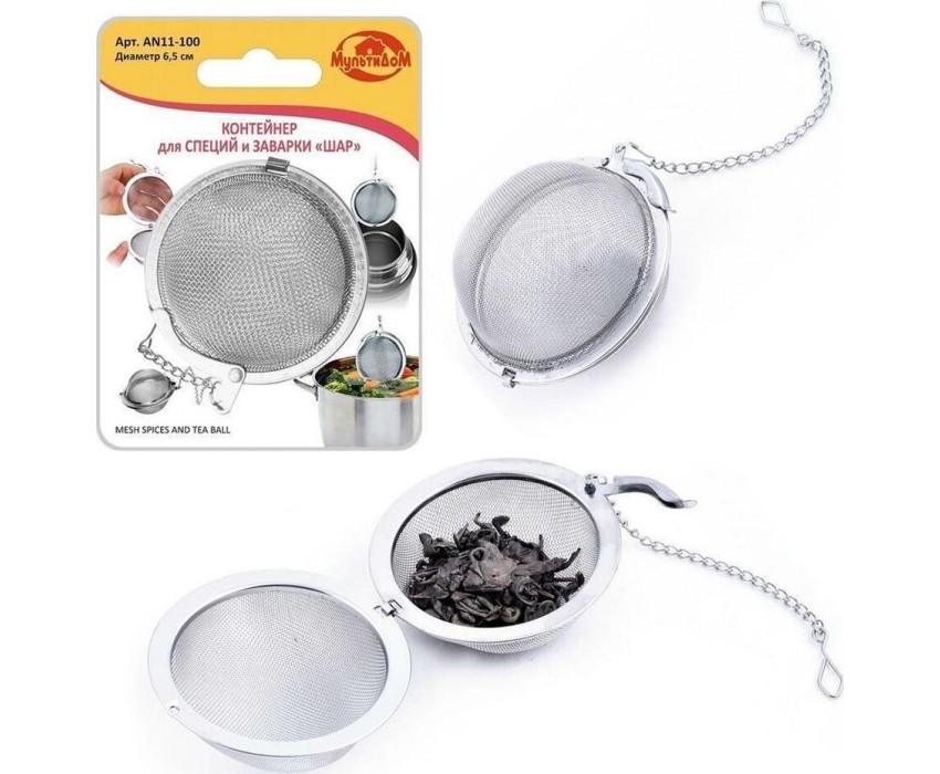 Контейнер для специй и заварки "Шар" D6,5см AN11-100 Материал: Коррозионностойкая сталь Диаметр 6,5 см.