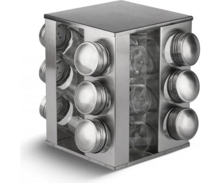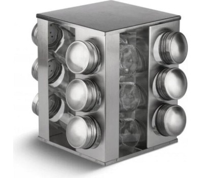 Набор для специй EDENBERG EB-4026 представляет собой четырёхстороннюю вращающуюся стойку из нержавеющей стали с 12 ёмкостями. Металлическая поверхность стойки имеет матовую полировку. В комплект входят 12 стеклянных ёмкостей со специальными крышками из нержавеющей стали и пластиковыми сетками для дозировки специй с удобным механизмом снятия крышки с баночки.