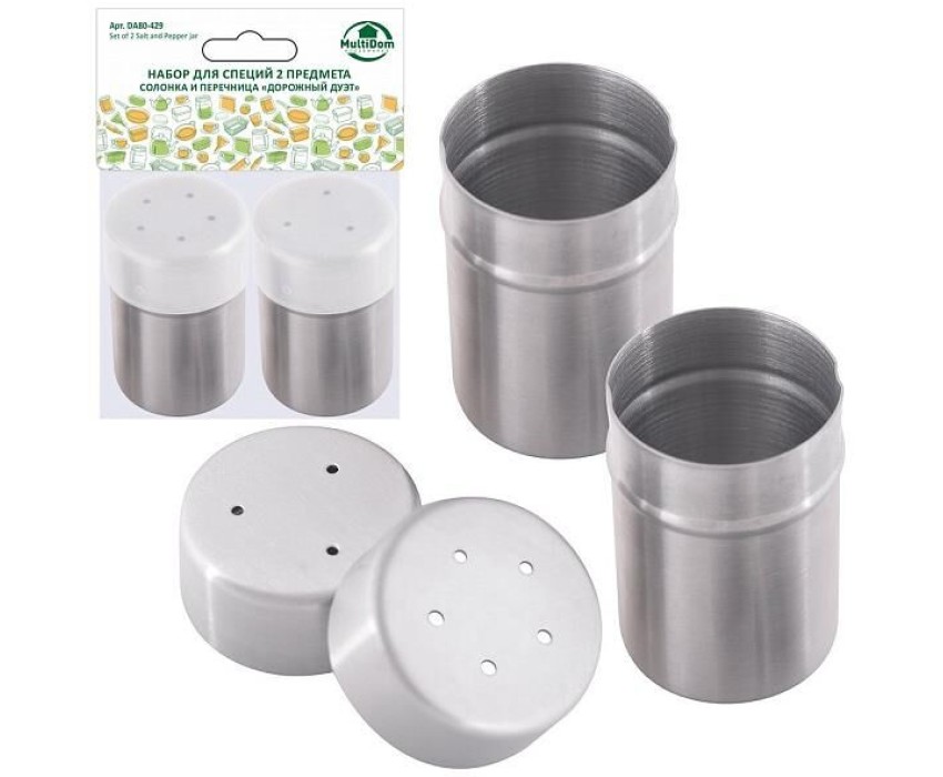 MULTIDOM Набор для специй 2 предмета. Солонка и перечница. "Дорожный дуэт". Диаметр 4 см, высота 6,4 см. DA80-429