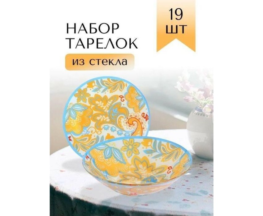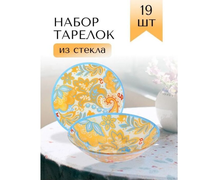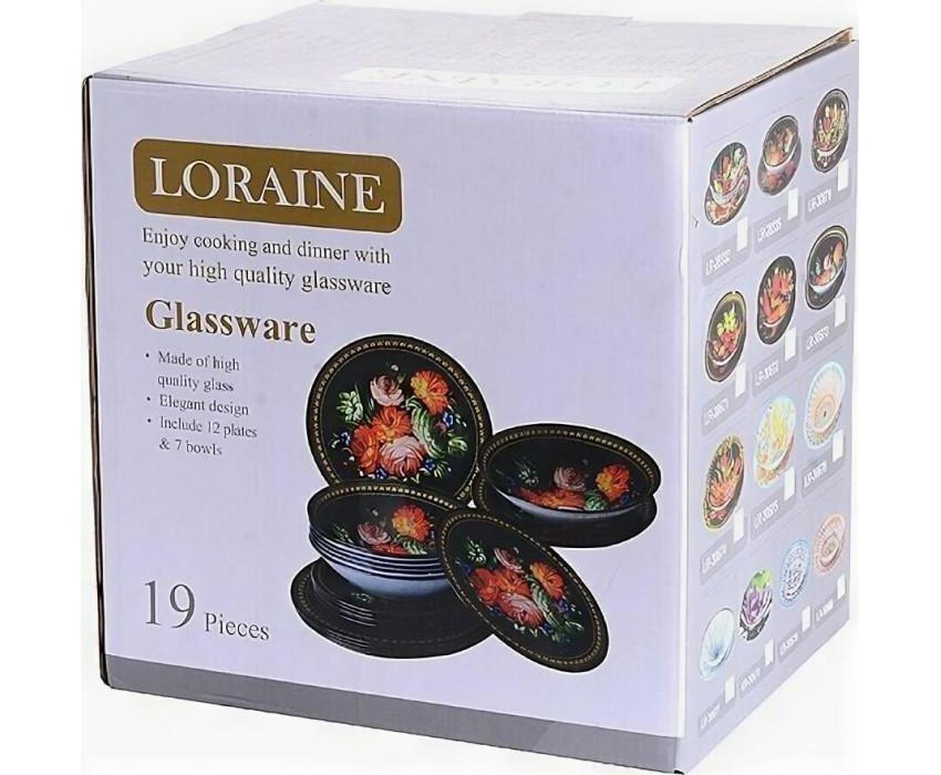 Набор посуды LORAINE выполнен из стекла и декорирован красочным цветочным рисунком. Данный набор предназначен для сервировки обеденного стола на 6 персон. Форма изделий круглая. Классический дизайн сочетается в нем с максимальной функциональностью. Такой набор послужит отличным подарком к любому празднику, а также добавит элегантности и уюта любому праздничному столу Посуда обладает гладкой непористой поверхностью, не впитывает запахи, устойчива к перепадам температуры и легко моется. В набор входит 6 десертных тарелок, 6 глубоких тарелок, 6 больших тарелок и 1 большая салатница. Подходит для мытья в посудомоечной машине.