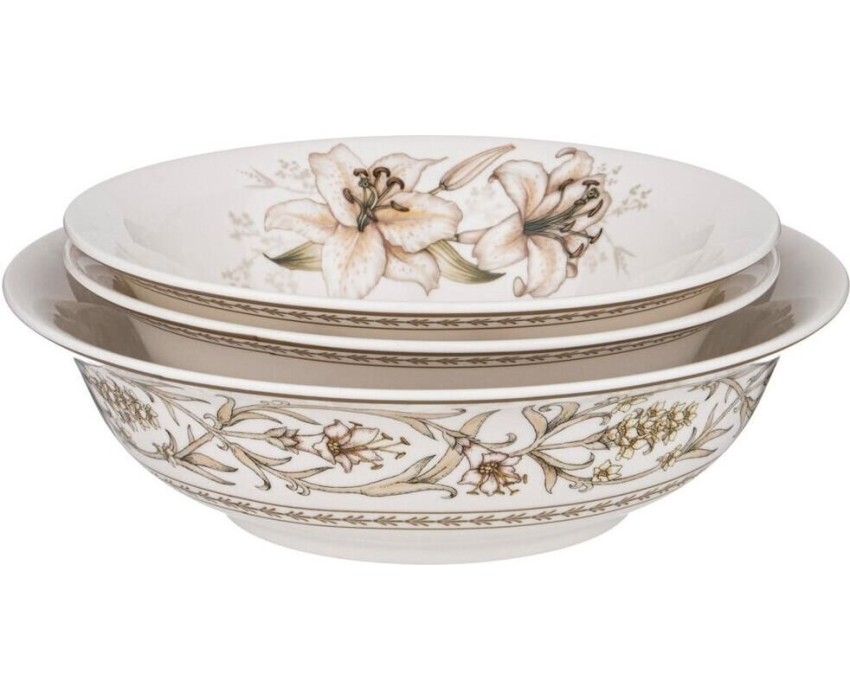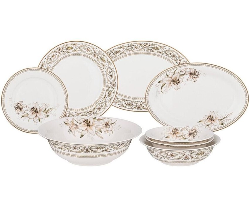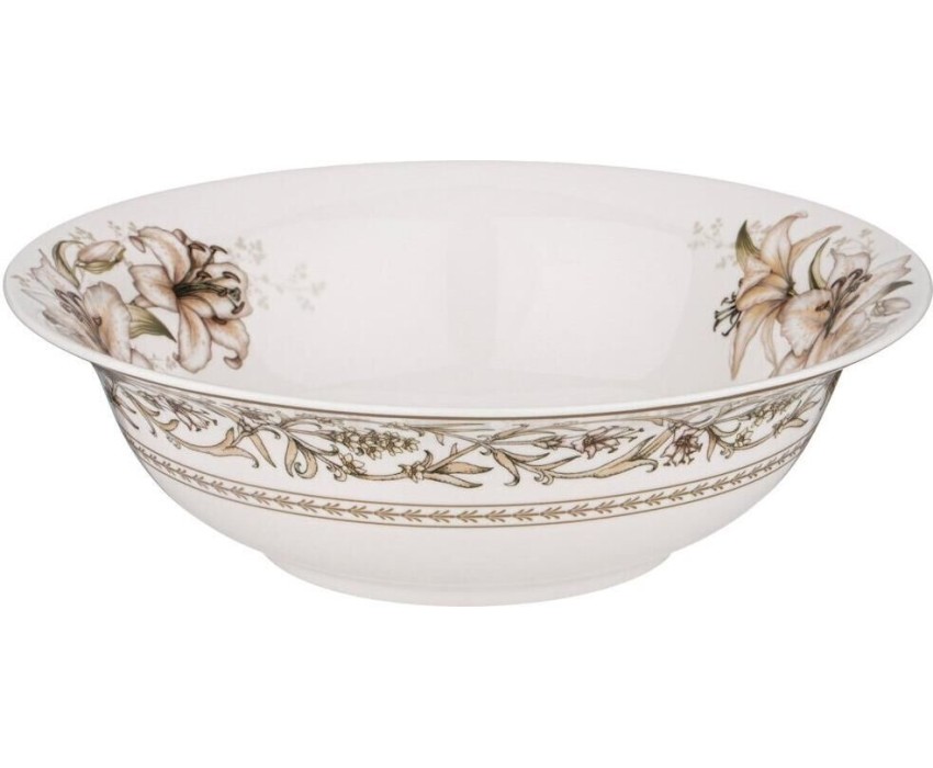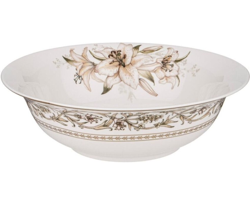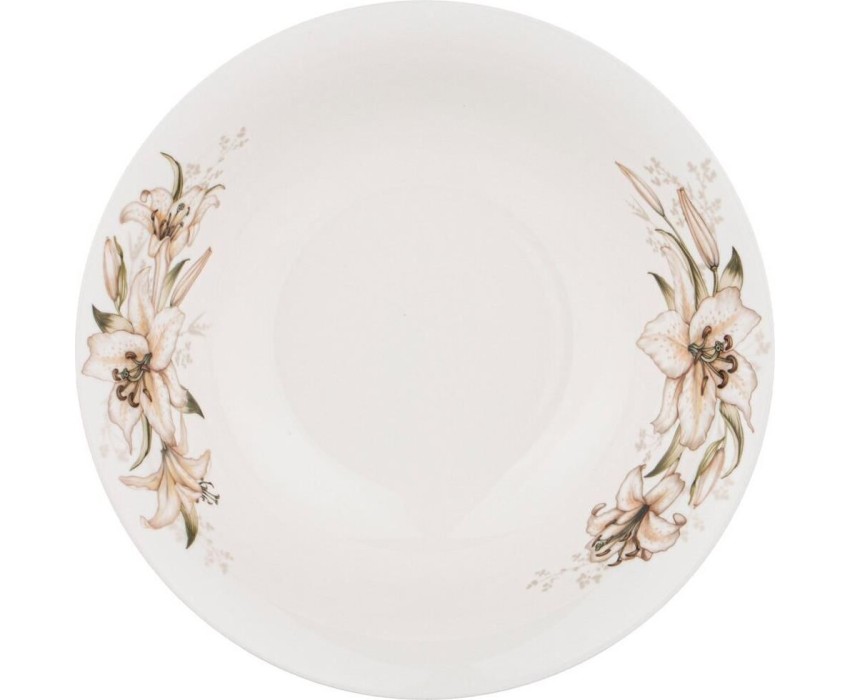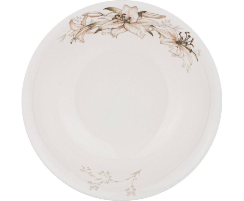 TM Lefard коллекция "Лилии" - эксклюзивная коллекция белых лилий на современных формах. Этот цветок известен с 1700 года до нашей эры и от древнегальского "ли - ли" означает "белый - белый". Согласно греческому мифу, лилия появилась из капель молока богини Геры и является символом чистоты и женственности, королевой всех цветов. Качественный тонкостенный фарфор, "живые" натуральные цвета декора, красочная упаковка делают предметы коллекции прекрасным подарком к любому случаю. Продукция сертифицирована, безопасна для контакта с пищевыми продуктами. Разрешено ставить в микроволновую печь, мыть в посудомоечной машине. Комплектность: тарелка обеденная 25,5 см 6 шт., тарелка закусочная 20,5 см 6 шт, тарелка-салатник суповая 18*5 см 700 мл 6 шт, блюдо овальное 32*22 см 2 шт., салатник 23*7 см 1400 мл 1 шт., салатник 15,5*5 см 400 мл 2 шт.