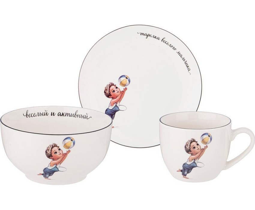 Набор столовый LEFARD НАБОР ПОСУДЫ ВЕСЕЛЫЙ МАЛЬЧИК 3 ПР.: САЛАТНИК 470МЛ, ТАРЕЛКА 20СМ, КРУЖКА 220МЛ 260-679