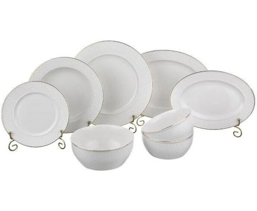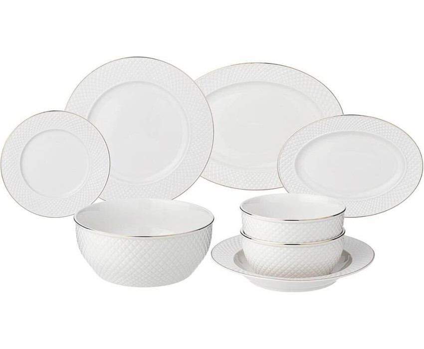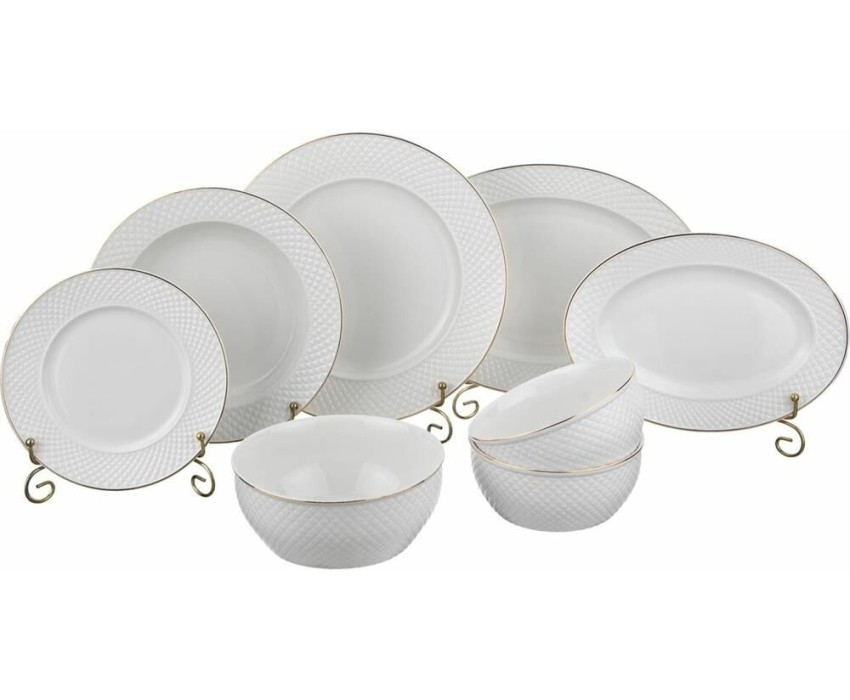 Комплектность: тарелка обеденная 26 см – 6 шт., тарелка суповая 23 см – 6 шт, тарелка закусочная 19 см – 6 шт., салатник 17,5 см – 1шт., салатник 14,5 см – 2 шт., блюдо овальное 30*22 см – 1 шт., блюдо овальное 26*18 см – 1 шт.