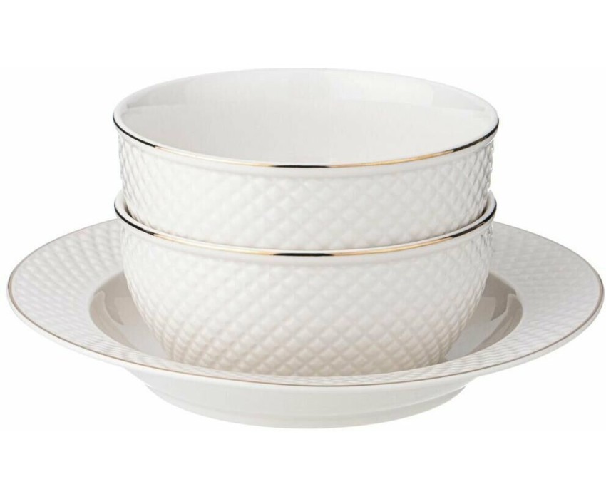TM Lefard коллекция "Диаманд Голд" - посуда и предметы сервировки из белого фафора с золотой каймой. Изделия выполнены из упрочненного фарфора. Стильная упаковка. Идеальная сервировка праздничного и ежедневного стола. Отличный подарок! Продукция сертифицирована и безопасна для контакта с пищевыми продуктами. Нельзя ставить в микроволновую печь, не рекомендуется мыть в посудомоечной машине.
