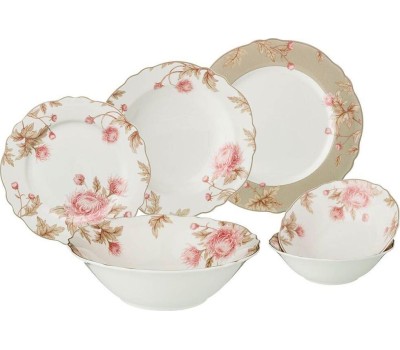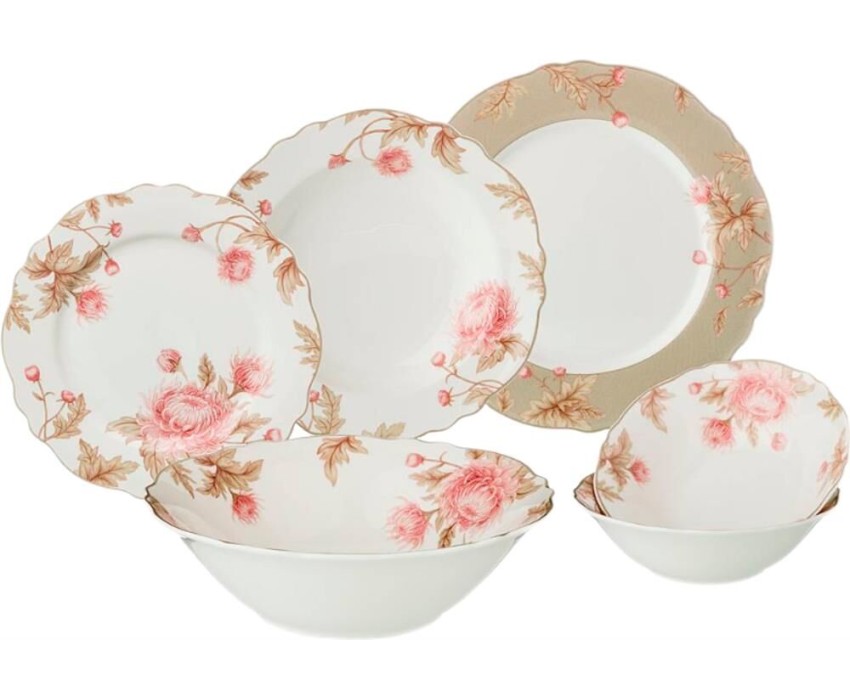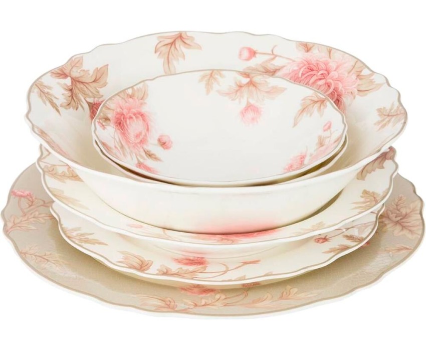 Комплектность: обеденная тарелка 25 см - 6 шт., закусочная тарелка 20 см - 6 шт., суповая тарелка 23 см - 6 шт., салатник 23 см - 1 шт., салатник 16 см - 2 шт.