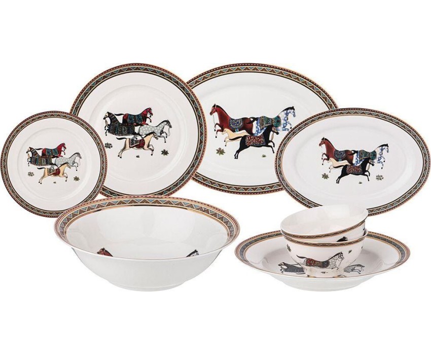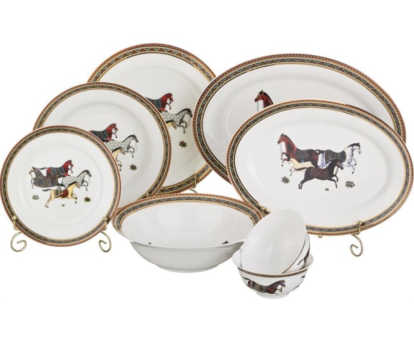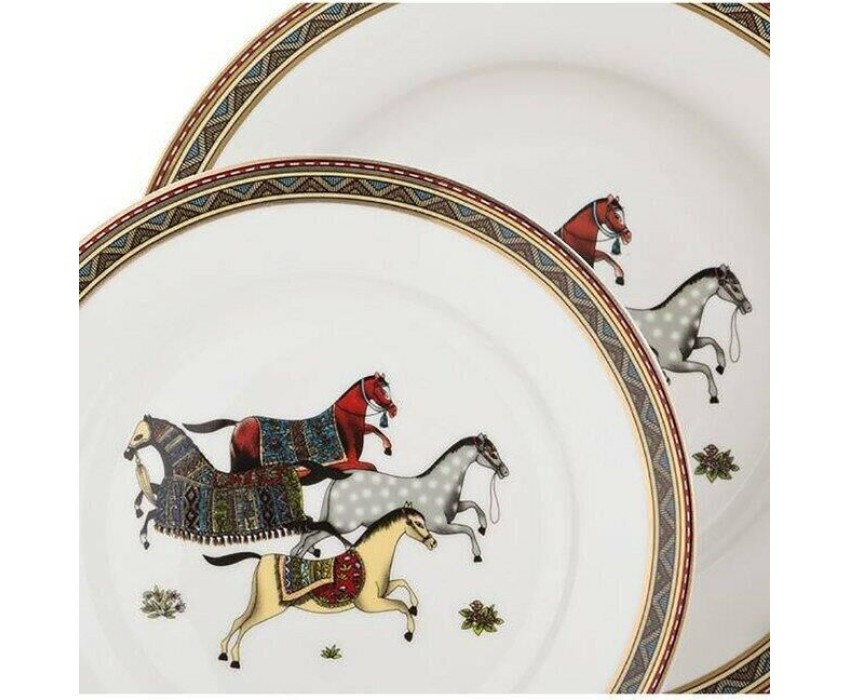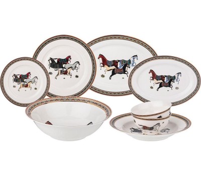 ТМ Lefard коллекция Passage мужественная и стильная. Движения лошадей эластичные, элегантные с активным импульсом. Каждая диагональная пара ног поднимается и ставится в очень точном ритме и с подвисанием. Шея лошади приподнята и округлена, затылок находится в высшей точке, голова опущена почти вертикально. Этот ритм завораживает. Посуда для сервировки стола из тонкостенного упрочненного фарфора неповторима. Прямые формы. Декор с богатым орнаментом и золотой окантовкой. Посуда прошла сертификацию. Безопасна для контакта с пищевыми продуктами. Отличный подарок. Не использовать в микроволновой печи, не рекомендуется мыть в посудомоечной машине.