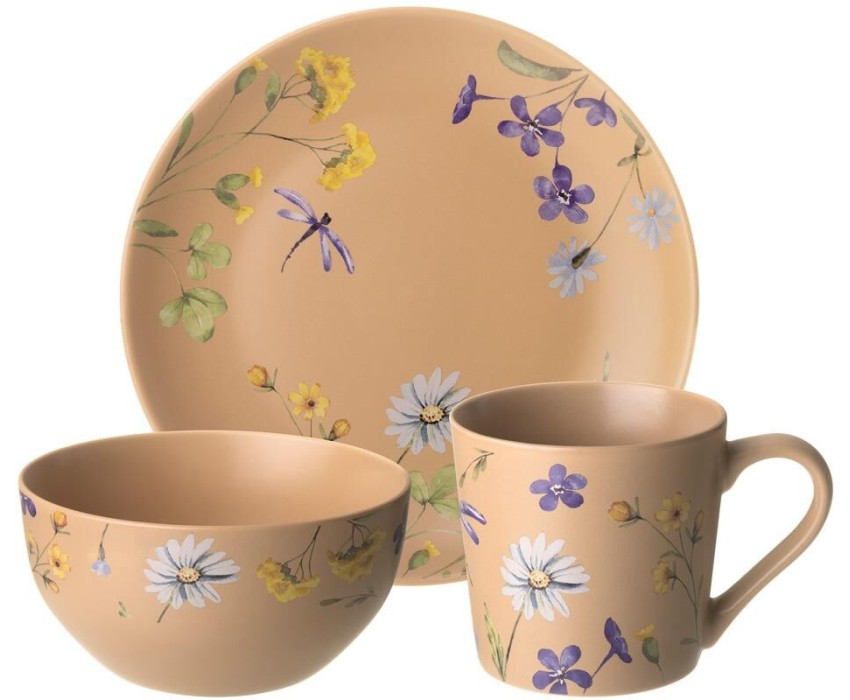 Набор столовый LEFARD НАБОР ПОСУДЫ "FLOWERS" 3 ПРЕДМЕТА: КРУЖКА 390МЛ, САЛАТНИК 640МЛ, ТАРЕЛКА 20,5СМ 260-1085