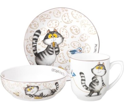Набор столовый LEFARD НАБОР ПОСУДЫ "СЧАСТЬЕ ЕСТЬ" 3 ПР.: КРУЖКА 400 МЛ, ТАРЕЛКА 20,5 СМ, САЛАТНИК 15,5*5 СМ 600 МЛ 85-2091
