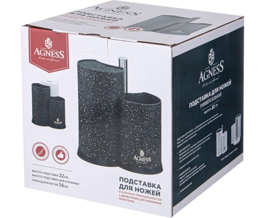 Подставка для ножей AGNESS 911-752 универсальная с держателем для полотенец