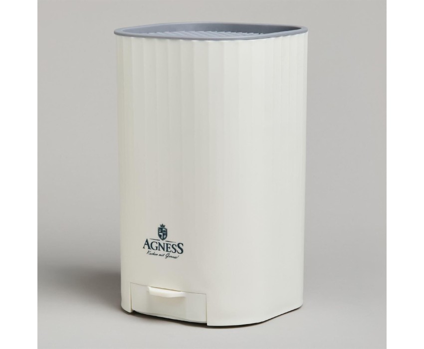 ПОДСТАВКА ДЛЯ НОЖЕЙ - необходимый аксессуар на каждой кухне. Подставка AGNESS легко и удобно решает проблему хранения ножей. * Сохраняет остроту кромки ножа. * Подходит для ножей разной длины * Компактное хранение ножей и кухонных аксессуаров * Легко чистить и мыть. Верхняя часть съемная * Точильный камень в комплекте Точильный камень имеет 2 уровеня заточки. 800/2000 грит 800 грит - для выравнивания лезвия 2000 грит - для остроты лезвия Перед началом заточки точильный камень необходимо смочить водой. Начинайте заточку ножей со стороны, обладающей большей зернистостью (800 грит), затем перейдите на мелкозернистую сторону (2000 грит).