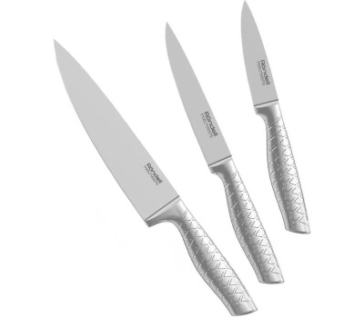 Тип упаковки: коробка подарочная. Количество предметов в наборе: 3. Состав комплекта: нож поварской 20 см, нож универсальный 13 см, нож для овощей 9 см. Особенности: Материал клинка: высококачественная нержавеющая сталь X30Cr13. Особенности клинка: твердость по шкале Роквелла 52-55 HRC, двусторонняя заточка лезвий. Цельнометаллическая конструкция ножа. Противоскользящий рельеф на рукоятке. Материал клинка: высококачественная нержавеющая сталь X30Cr13. Особеннос. Габариты упаковки (ед) ДхШхВ: 0.4x0.155x0.03. Страна производства: Китай. Гарантия: 24 мес.. Цвет: стальной. Тип упаковки: коробка подарочная. Количество предметов в наборе: 3 шт. Цвет: стальной